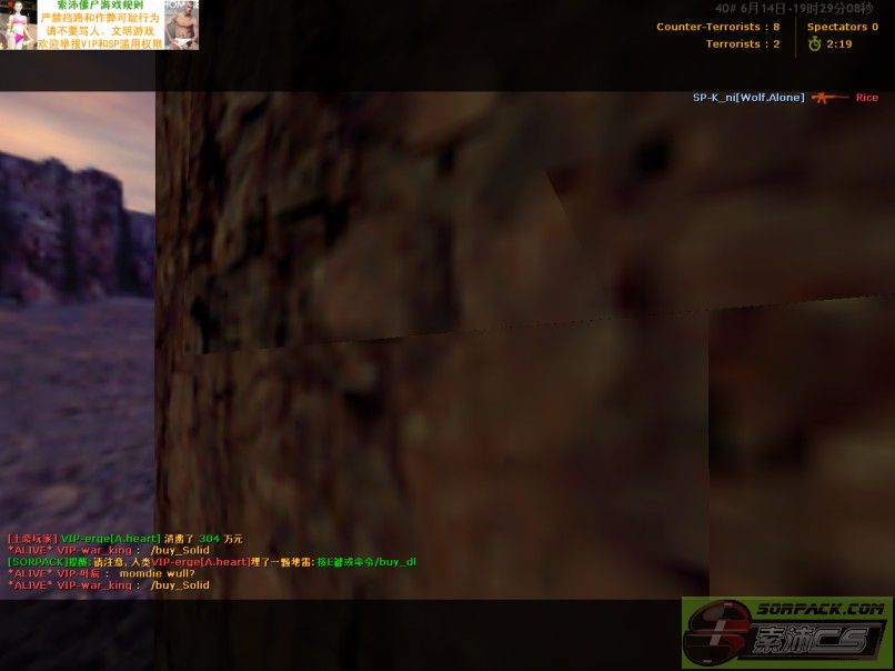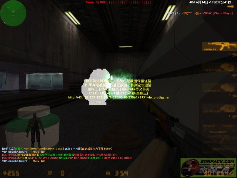 | 5 | 2023-06-14 19:32:00 | 【40丧尸升级服】管理员SP-K_ni[Wolf.Alone]把玩家VIP-叶辰的臭嘴封住了[Demo] |