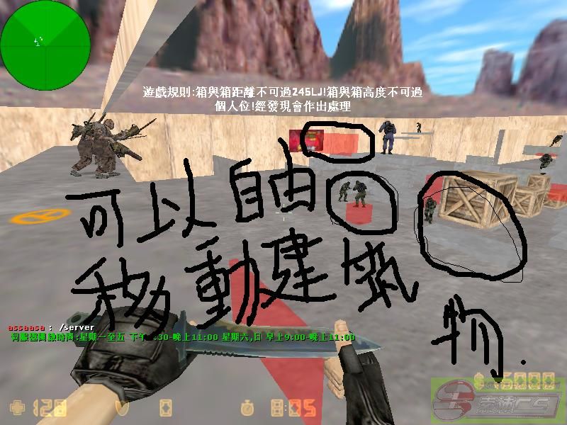 我發了一張圖。這個遊戲的大致玩法是開局人類自己建築地形,100秒以後僵尸出來。 ip地址是 183.179.69.24:27016。 大家可以去看一看。
