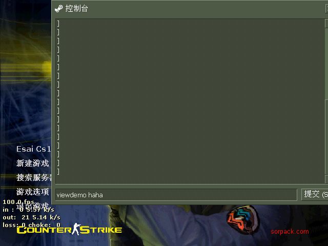 2.最好先建立一個比賽用圖比如dust2,(註:這是因為,如果不這樣的話,主視角demo裡的比分牌將會是一片空白)。進入遊戲,按~鍵調出控制台,在控制台中輸入playdemo空格後輸入文件名(比如haha),按enter。