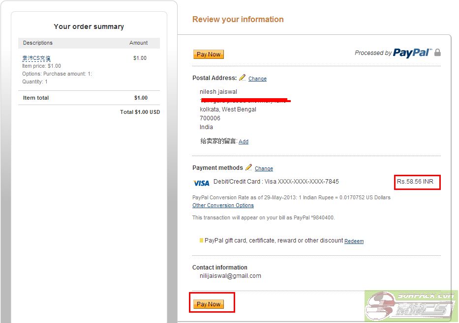 Sekarang pergi ke sorpack pautan PAYPAL yang disebutkan di atas dan kemudian ikuti langkah-langkah ini