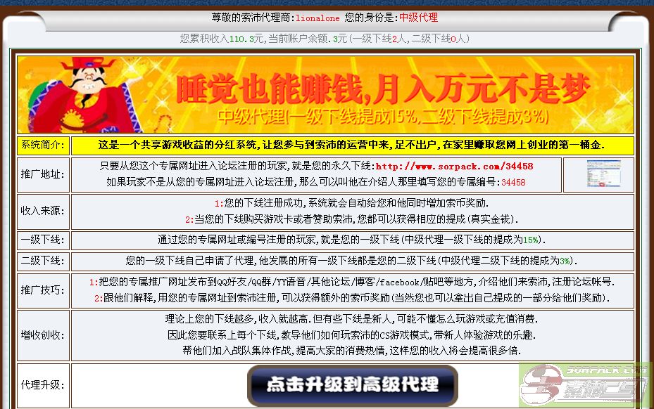 索沛提醒注意骗子:他们会利用QQ等聊天工具联系上您,然后说要给您担任版主、队长、帮你升级等***,骗取您的帐号密码!骗子也会说要帮您发帖,跟您做好朋友,获取您的同情心,最后骗取您的密码。盗取了您的帐号后,他会利用您的帐号,再去骗取您所认识的朋友,或者拿您的帐号来作弊。因此您的帐号密码一旦被骗取,您的帐号可能会因为诈骗、作弊等违规行为而被永久封号。