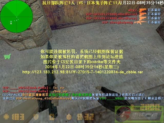 122014-1-22 8:35:00【07抗日战争服】会员VIP-BenLaDeng_456[alliedforce]购买OP权限把玩家VIP-____VBGS的臭嘴封住了[Demo]