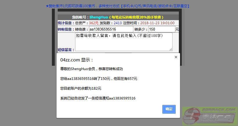 论坛索币转账