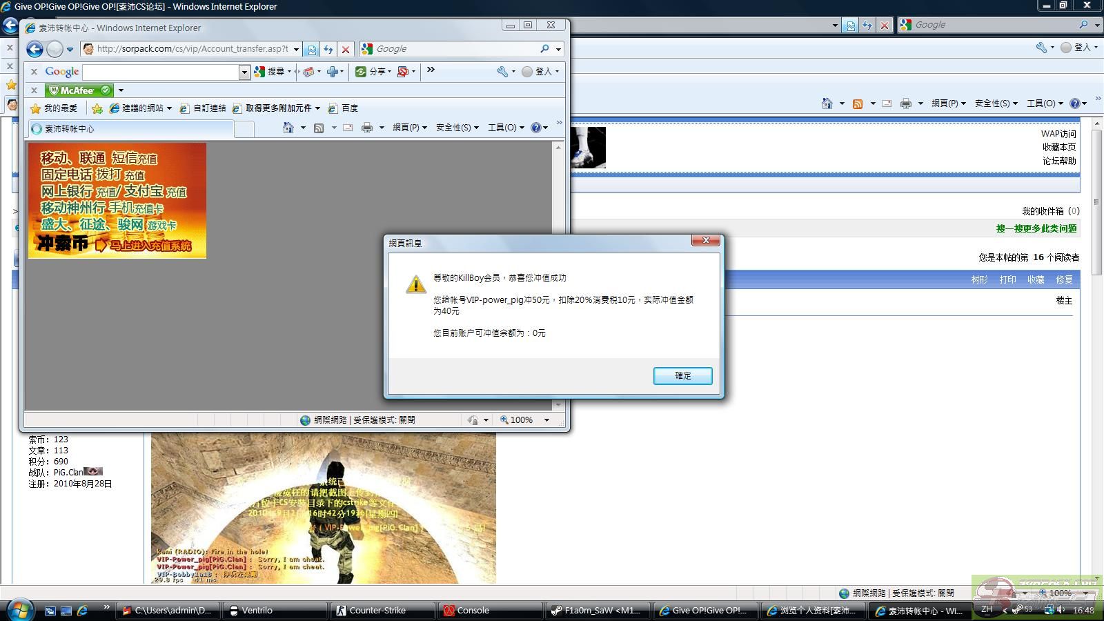 【06娱乐混战服(ThF.Tiger)】会员VIP-KillBoy购买OP权限把玩家VIP-Power_pig[PiG.Clan]惩罚5局