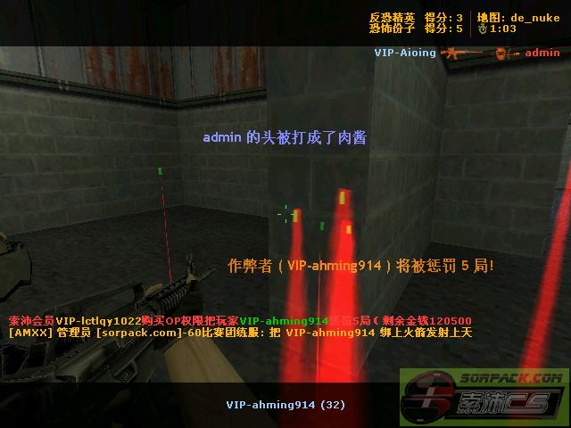 | 12 | 2010-9-23 12:54:00 | 【60比赛团练服(PhX.Chicken)】会员VIP-lctlqy1022购买OP权限把玩家VIP-ahming914惩罚5局 |