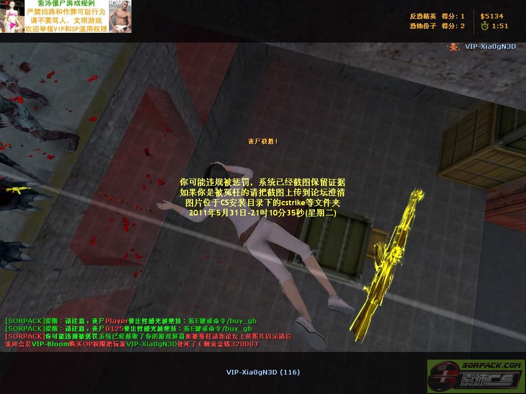 我买2w ak 在assault的灯上打僵尸,他突然op把我处死,op后马上不见人影