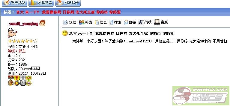 请各位版主相信,我也相信友情的为人很多人比我了解。但怎么这么快就定案了,强烈请求老大确确实实调查一下,不要冤枉好人。(很可能号被盗了)